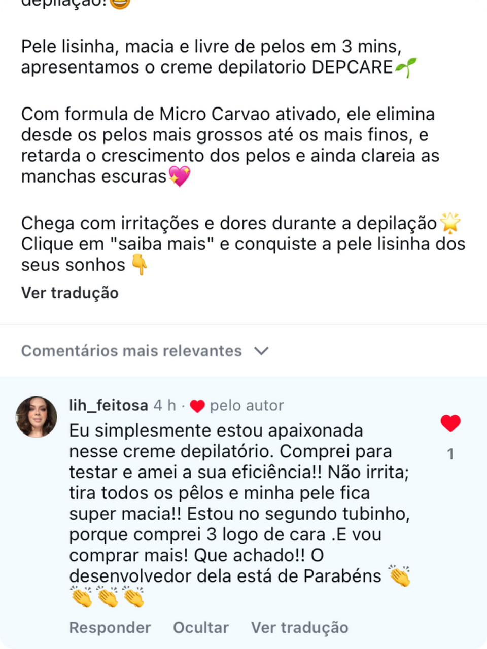 • ​Sem dores, irritação ou foliculite